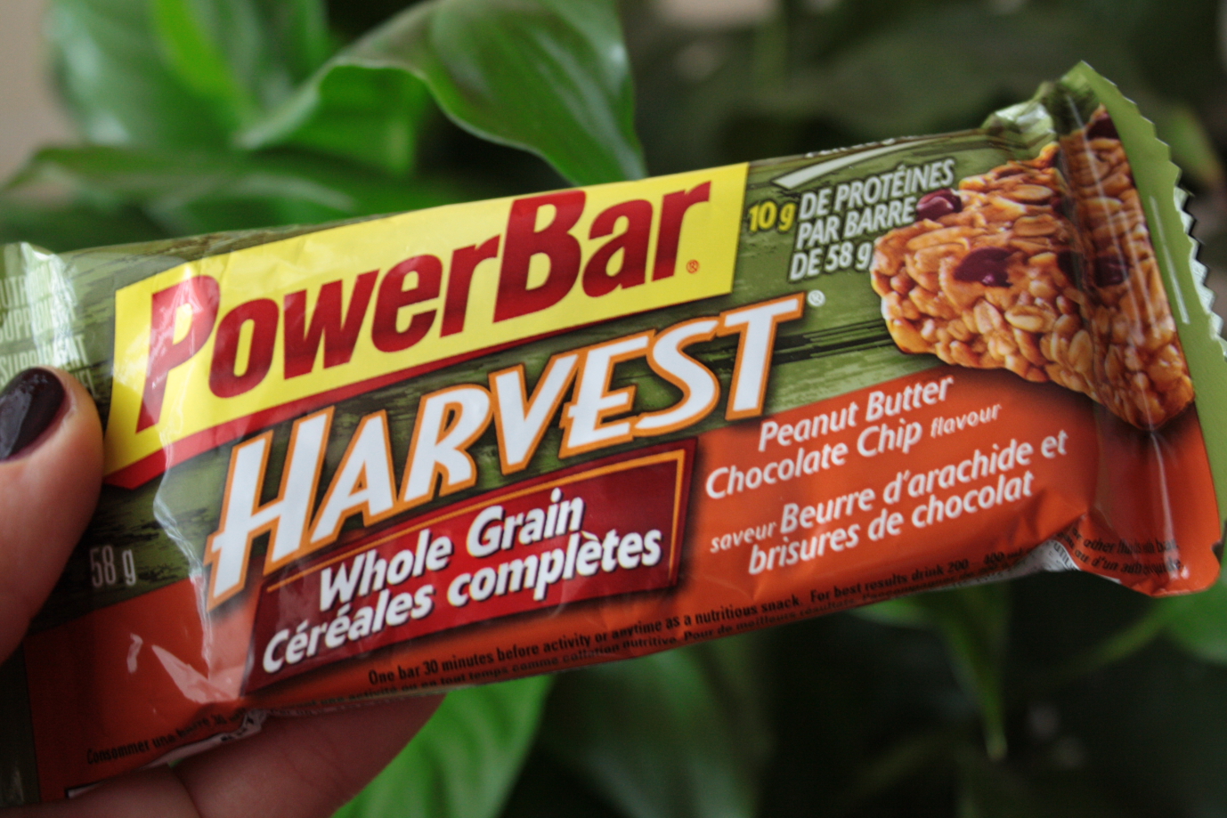 En revenant du gym cet après-midi, j’ai pris une petite collation pour patienter jusqu’au souper. Encore une demi PowerBar (j’en ai acheté 3 différentes pour avoir un bon aperçu). Côté goût et texture, bien que toujours un peu dur, elle a beaucoup plus de goût. En fait, le goût des pépites de chocolat prend le dessus, ce qui n’est pas une mauvaise chose, yum! Par contre, encore une fois, je ne la recommanderais pas, beaucoup trop de sucres et pas assez de fibres…