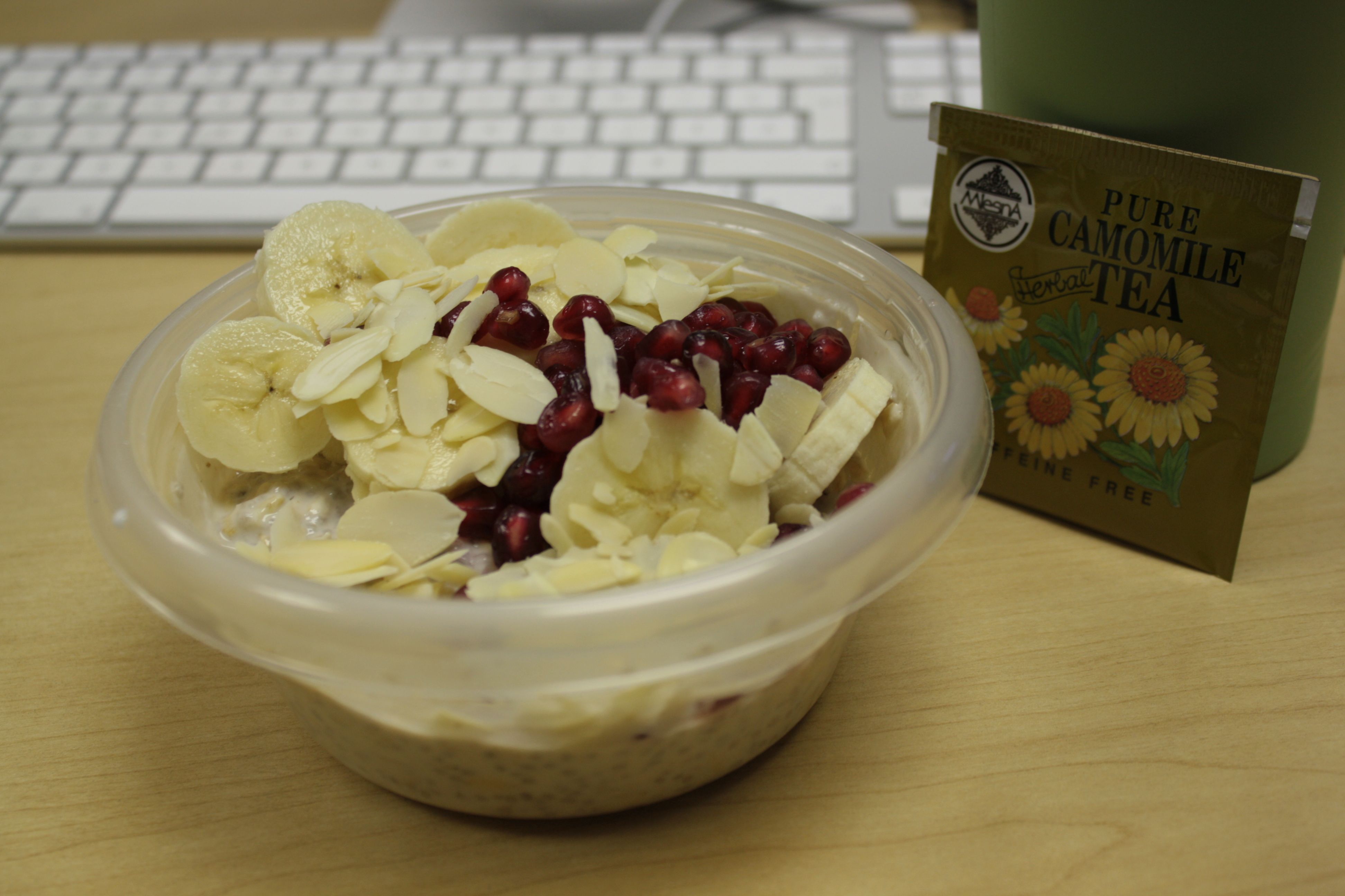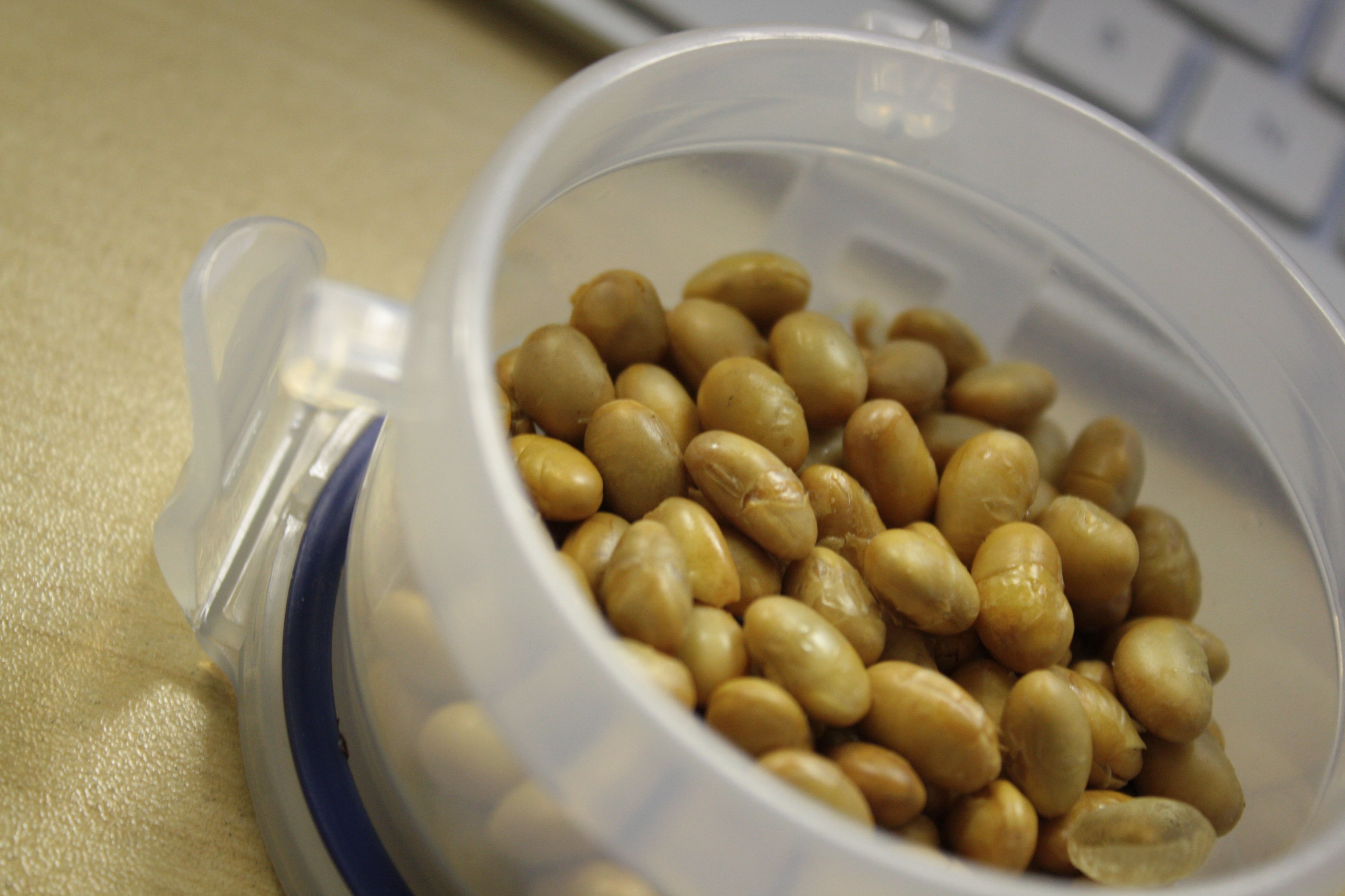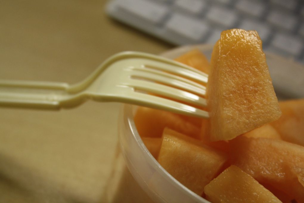 J’ai également amené du cantaloup et des graines de soya grillées sans sel. Je suis toujours affamée le matin, c’est probablement un effet secondaire de se lever aussi tôt. Heureusement que je n’ai pas un buffet devant moi car je ne sais pas comment je pourrais résister (surtout un buffet déjeuner, yum…)!