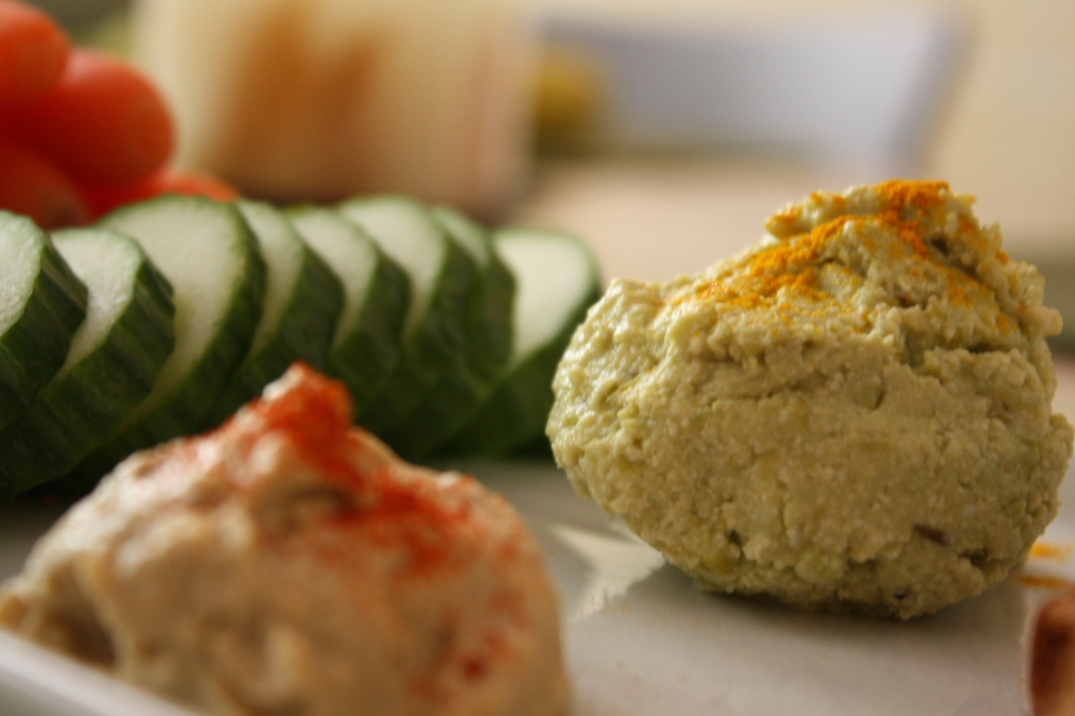 Ce midi, mon lunch était plutôt hétéroclite. J’avais un fond de Baba Ghanoush, un fond de tartinade de tofu aux fèves de soya et un fond de beurre d’amandes… J’étais plutôt sceptique concernant un mélange des trois dans un sandwich alors j’ai préféré y aller pour une assiette dégustation.