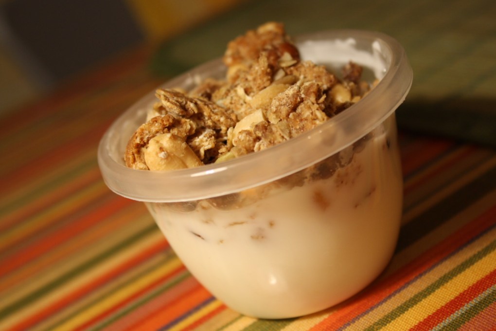 Et comme dessert, 100 g de yogourt nature et quelques graines de barres granola que j’ai essayé de cuire ce soir. Ce n’est pas au point encore je crois, pas assez de sucre (je veux couper mais il y a une limite à ne pas franchir)!! Je vais amené ça à mes goûteurs au travail demain, on verra ce qu’ils en pensent!
