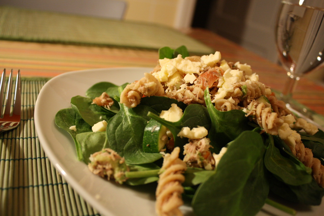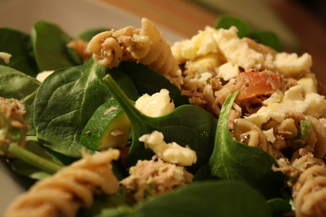 Vous allez me trouver redondante mais, je vous rassure, ma salade était encore meilleure que ce midi! C’est la première fois que j’ajoute des épinards à une salade de pâtes mais certainement pas la dernière. Le mixte des textures était vraiment intéressant.
