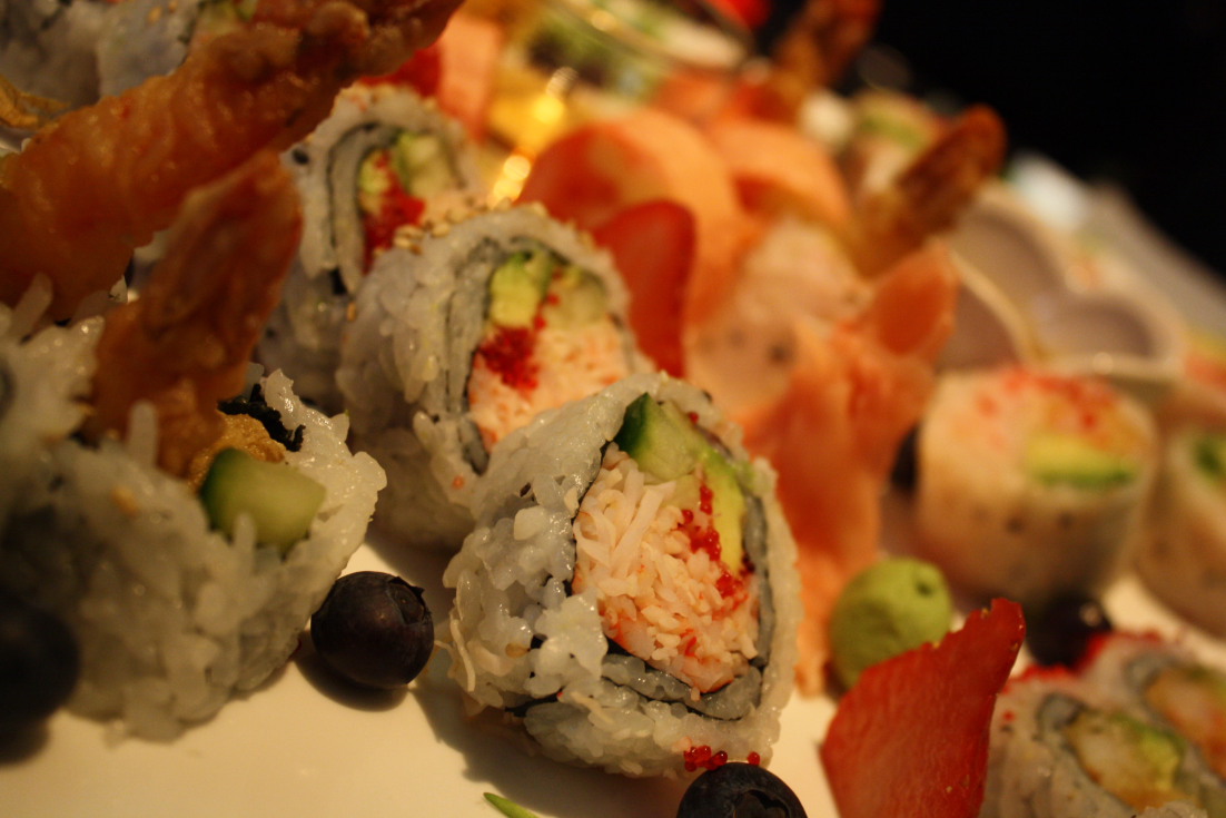 - Tora Tora Tora (crabe épicé, tobiko, avocat, crevette tempura, concombre, sésame) – 6 morceaux