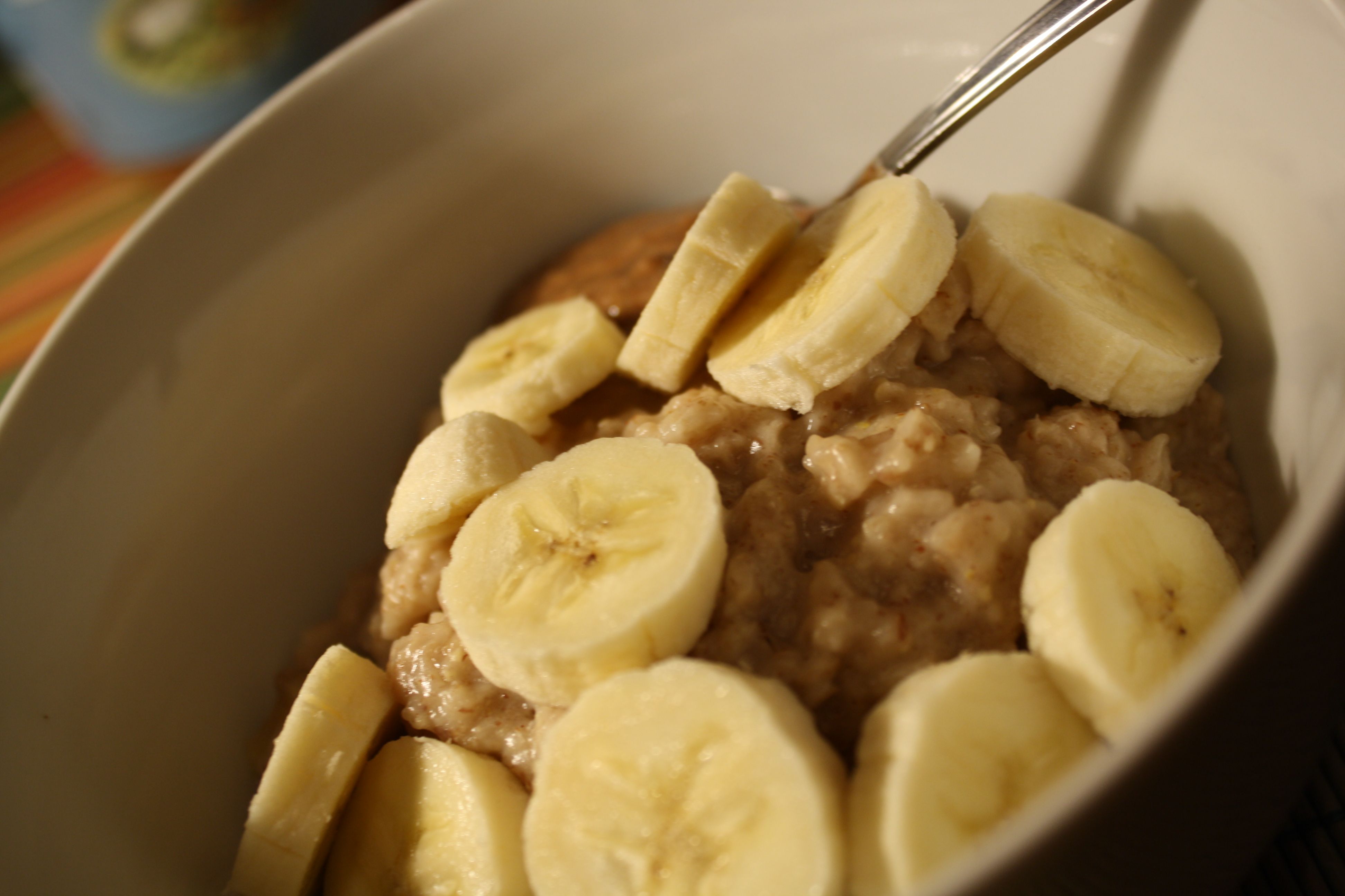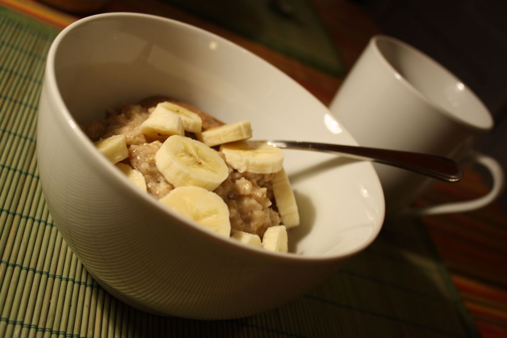 Ma gang de chanceux qui peuvent faire la grasse matinée et profiter du soleil qui nous a tant manqué… Je n’ai pas trop à me plaindre ce matin puisque, grâce à l’offre de ma mère de me reconduire au travail, j’ai pu déguster un bon déjeuner réconfortant. Je n’ai jamais été une fan de gruau avant de découvrir la recette de gruau crémeux aux bananes de Kath.