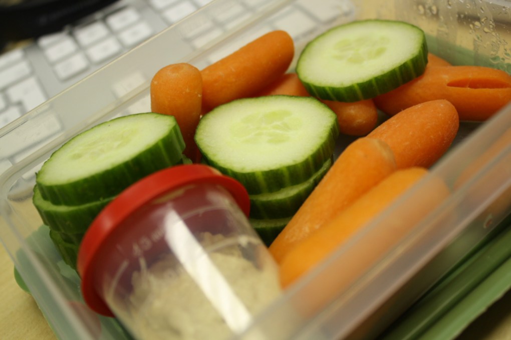 Tout d’abord, ma collation de fin d’après-midi. Finalement, je l’ai prise en cuisinant le souper. Pour les curieux, le petit pot contient de l’humus nature Fontaine Santé.
