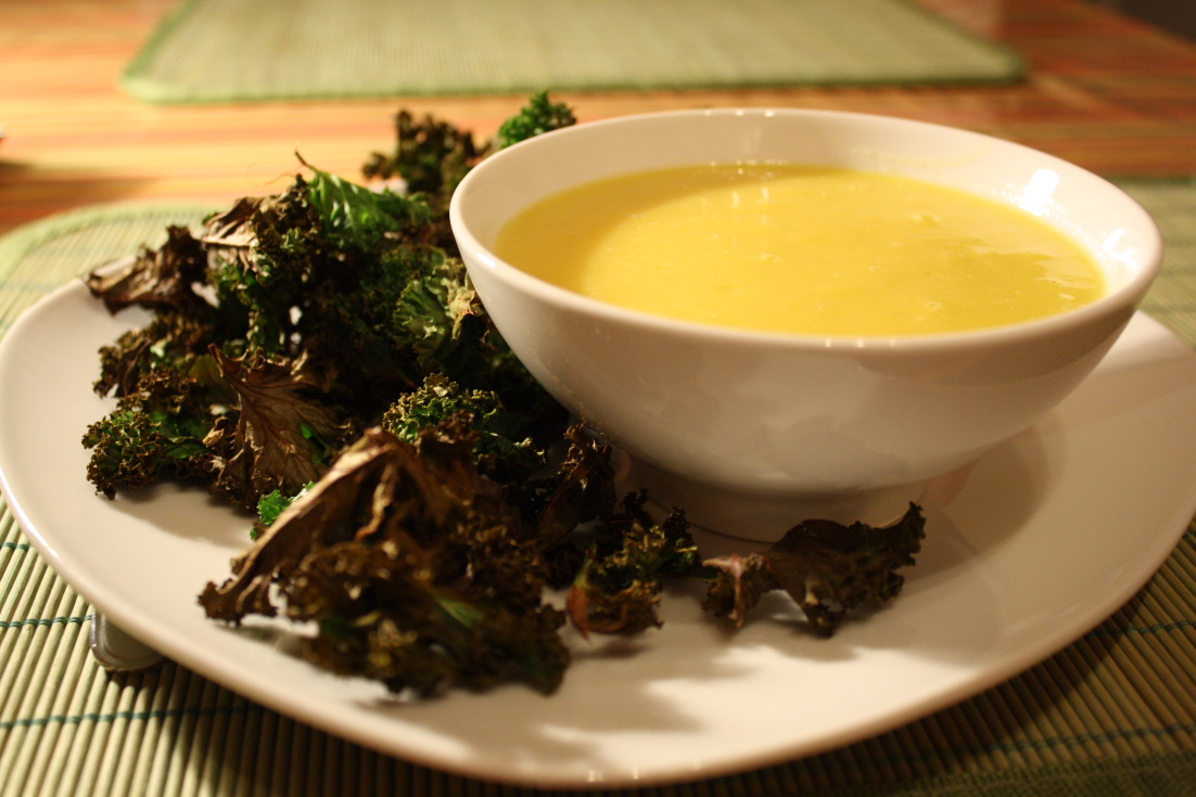 Alors ce soir, deuxième essai pour les chips de chou Kale. Encore trop cuites! Je vais devoir être plus attentive à la cuisson la prochaine fois! C’est probablement parce que je n’ai pas mis d’huile, ça cuit plus vite. Le goût est quand même excellent!