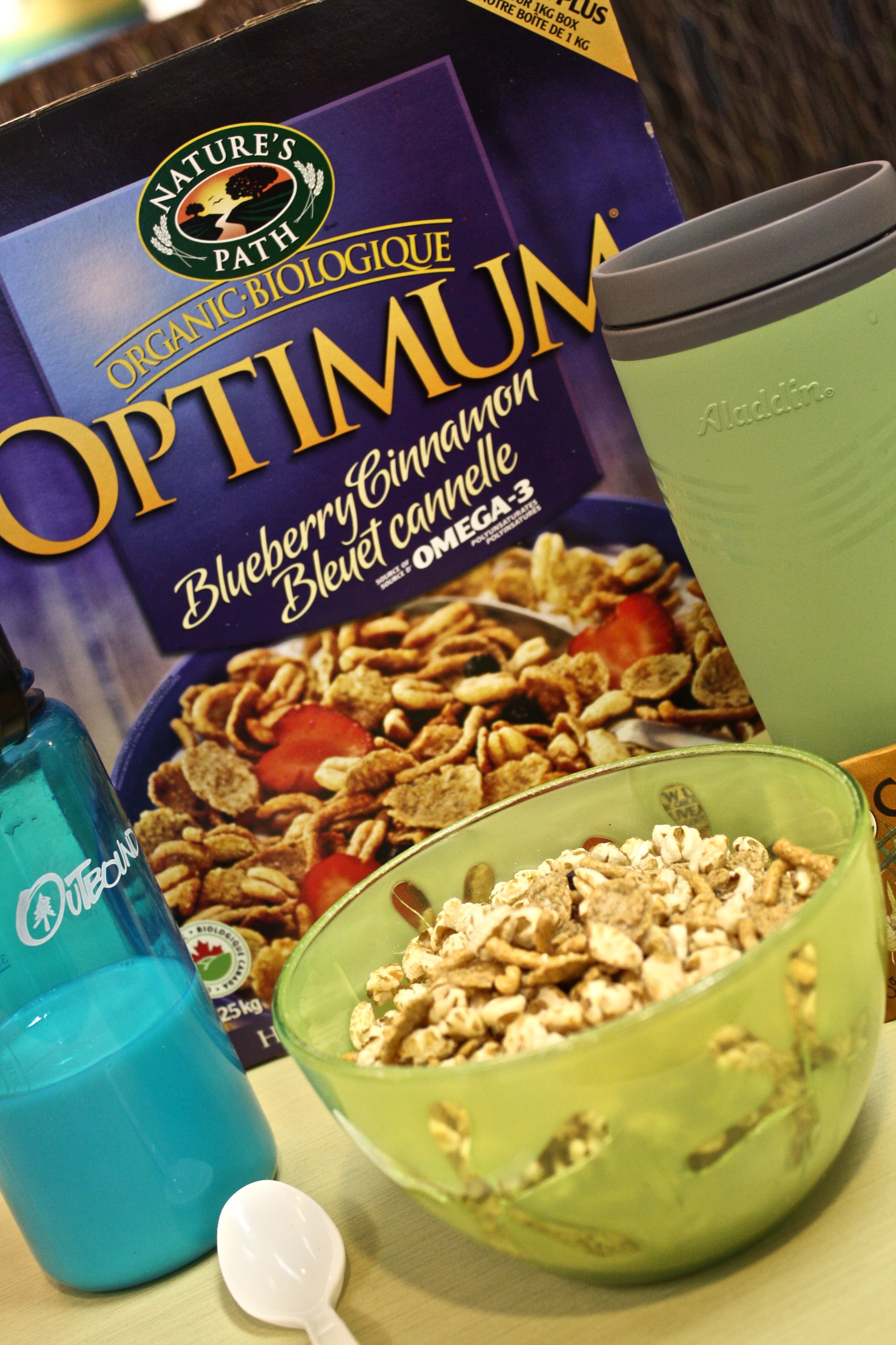 Vous allez voir dans mes photos, j’ai décidé d’amener ma boîte de céréales au travail! Non mais, j’y déjeune 5 à 6 fois par semaine, ça va être pratique! J’aurais dû y penser avant! J’ai fait mon mélange avec le blé soufflé directement dans la boîte hier soir donc je n’ai qu’à verser puis déguster!