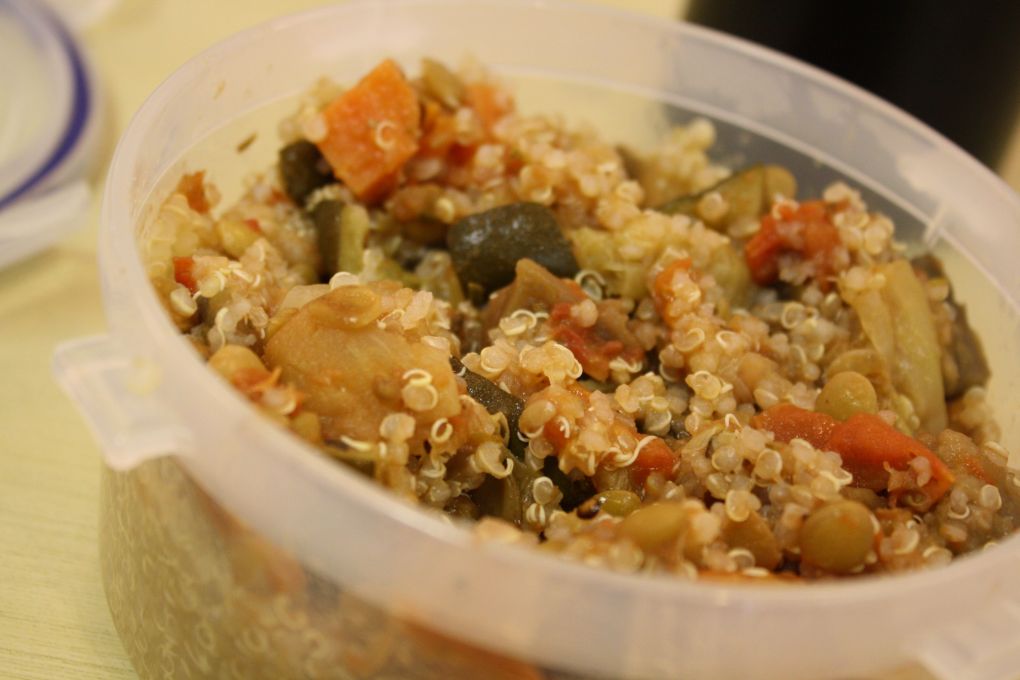 En plus de ma belle surprise ce matin (voir le « post » précédent), ma journée est faite! Dans mon lunch ce midi, une GROSSE portion de ratatouille aux lentilles accompagnée de quinoa. C’était excellent!