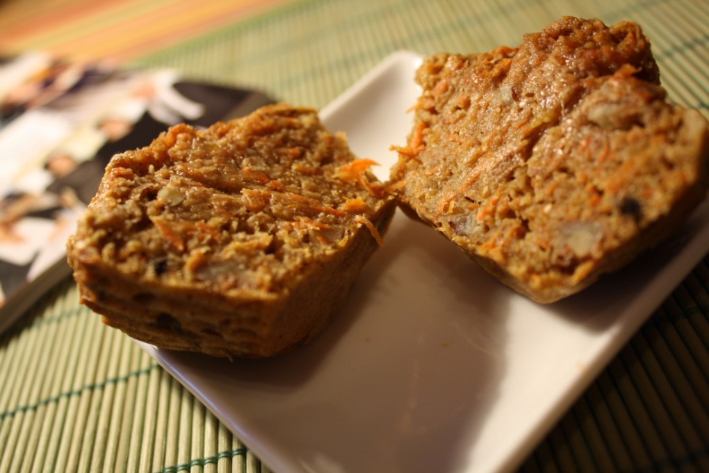 J’ai aussi grignoté un muffin aux carottes et pacanes que j’ai fait ce midi ; vraiment pas une réussite. Je ne comprends pas puisqu’il s’agit de la même recette que j’ai faite pour le brunch familial dans le temps des Fêtes et qui m’avait value plusieurs compliments… Mystère! On voit très bien dans la photo qu’ils ne sont pas assez cuits (ou qu’il y avait trop de liquide?).
