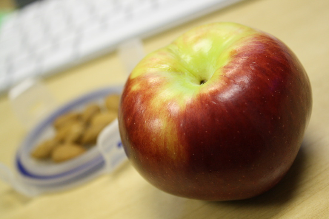 Mais revenons à aujourd’hui! J’ai oublié de vous montrer ma collation d’avant-midi… Une pomme Cortland et une dizaine d’amandes natures.
