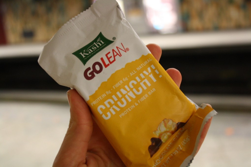 Ma collation avant l’entraînement, une barre Kashi Crunchy. On ne les a pas au Québec, bouhou! Malgré le fait qu’elle soit au caramel et chocolat, elle contenait quand même 6 g de fibres et 9 g de protéines. Malheureusement, la quantité de sucre était quand même plutôt élevée.