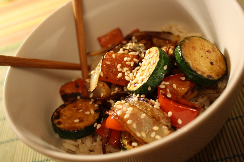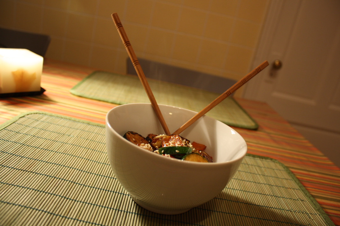 Pour souper, je me suis fait un sauté de légumes sur du riz brun.