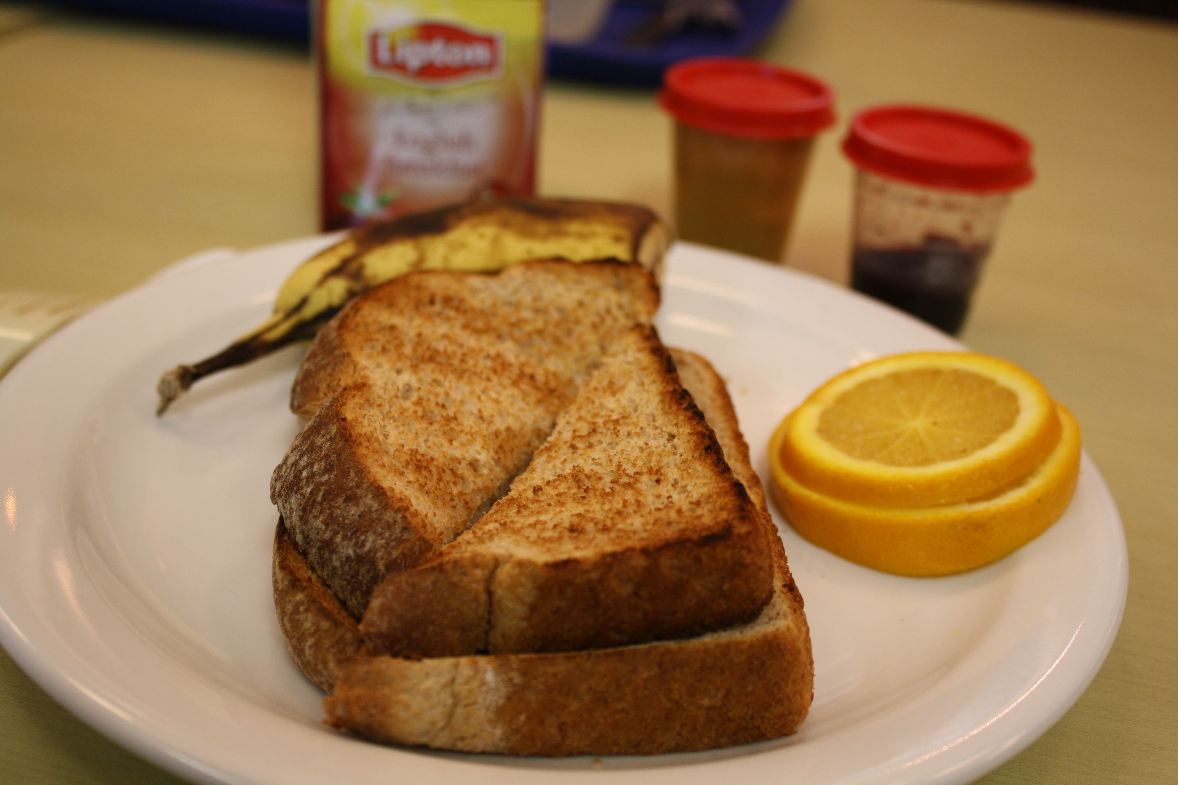 Pour notre dernier déjeuner d’équipe (la cafétéria restera fermée les week-ends à l’avenir), j’ai pris deux toasts de blé entier accompagnées de mes garnitures maisons. Une toast au beurre de peanut et banane et l’autre à la confiture de bleuets. Quelques tranches d’orange gracieuseté de mes collègues (finalement, j’ai mangé l’équivalent d’une orange complète) et un thé anglais. C’est la première fois que j’essaie cette sorte de thé et je ne crois pas en faire une habitude…