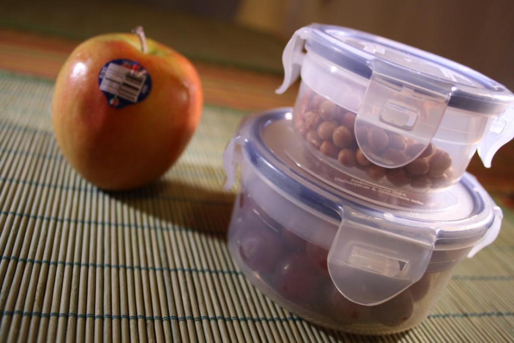 J’ai amené mon dessert et une collation pour la soirée… Une pomme Jazz (verdict : même goût et texture que la Gala, bref, une gagnante!), des raisins rouges et des graines de soya rôties.