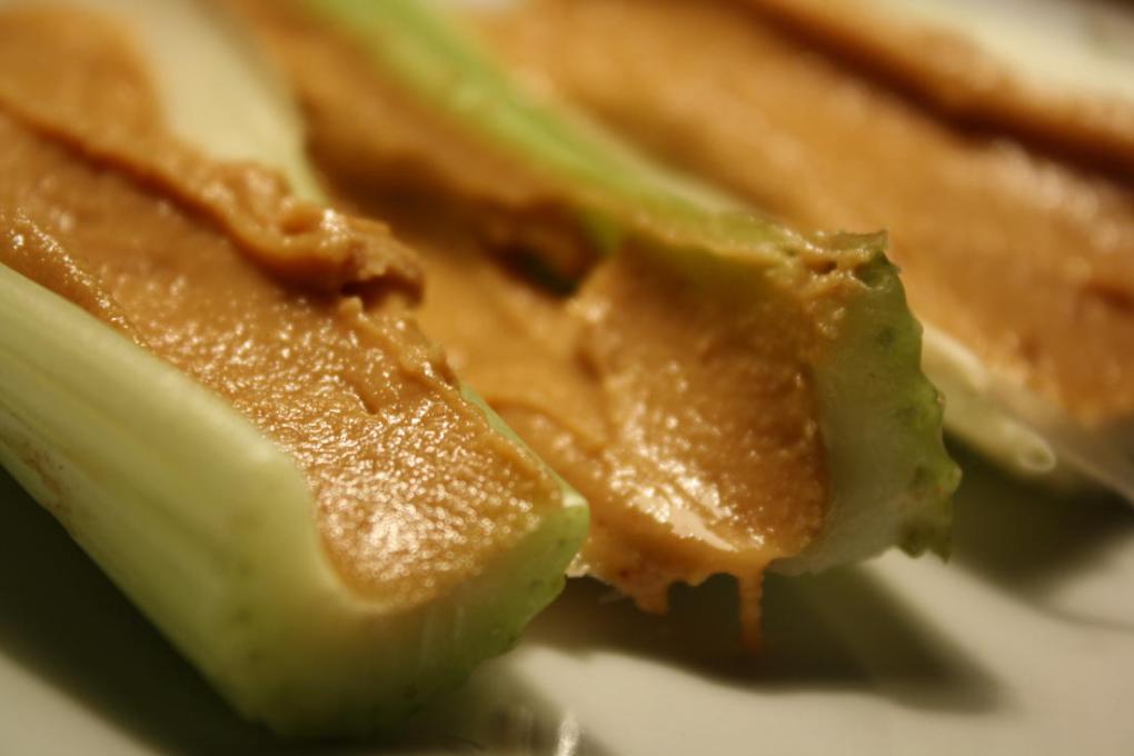 En revenant, j’ai mangé quelques morceaux de céleri avec du beurre de peanut.