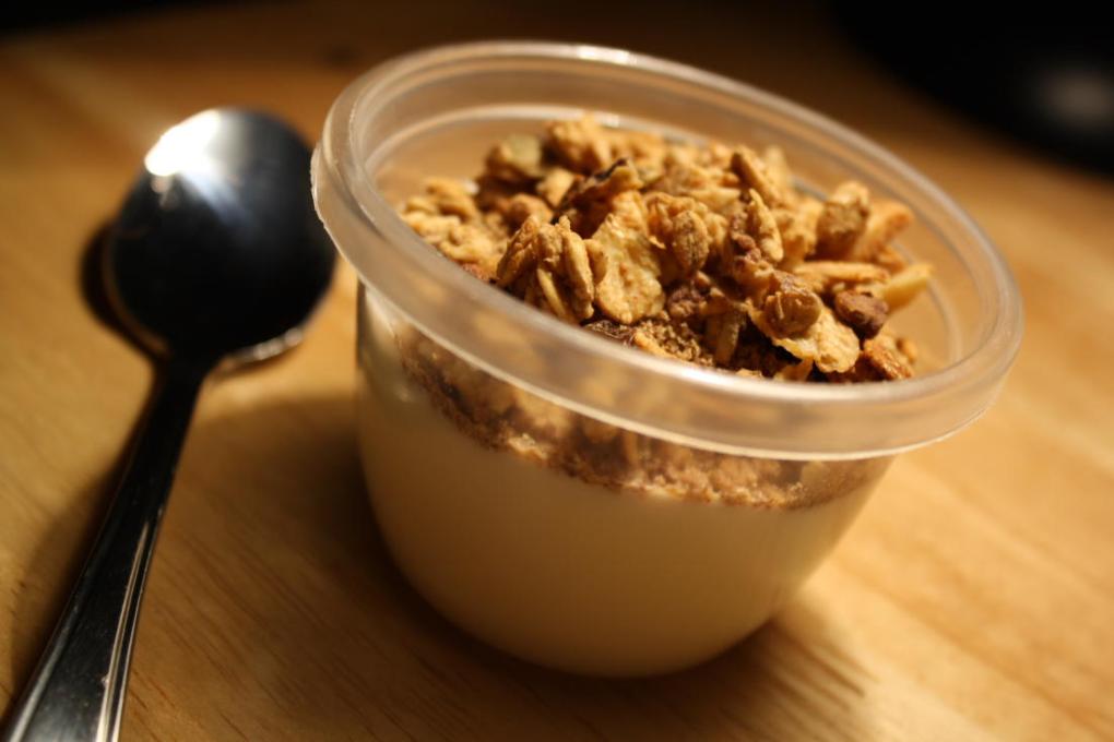 Comme dessert : un yogourt nature avec 1 c. à soupe de graines de lin moulues et une poignée de granola.