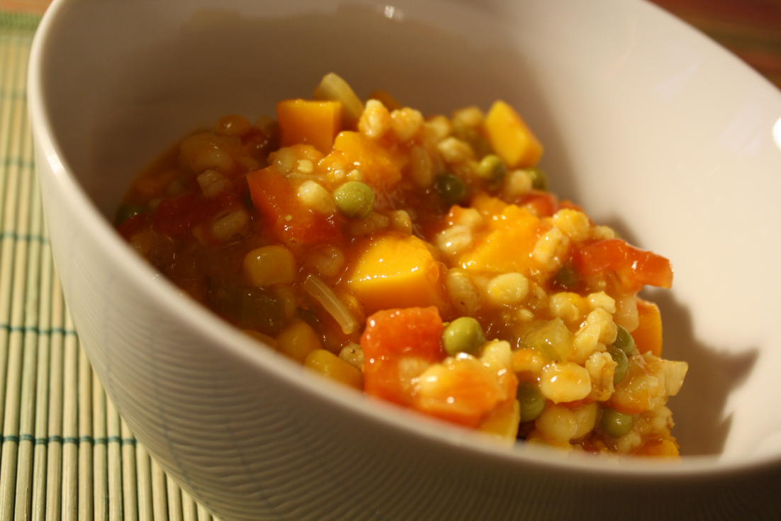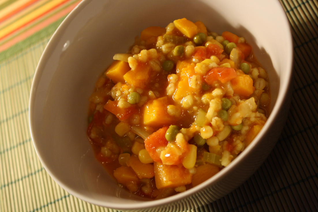 Parlons soupe maintenant. L’orge et les légumes ont absorbé la majeure partie du bouillon ce qui fait que ça ne ressemble plus trop à une soupe. Ça me convient parfaitement, je n’aime pas trop quand il y a deux ou trois morceaux de légumes qui flottent dans 1 tasse de bouillon.