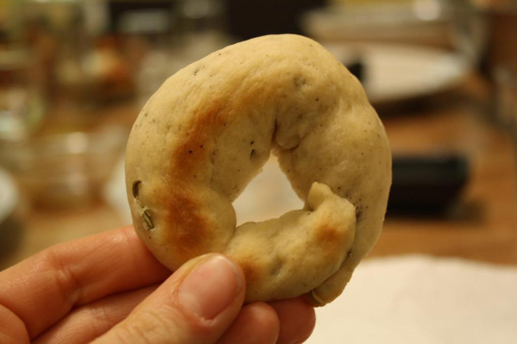 J’ai aussi découvert les tarallis, une grignotine italienne semblable, dans la texture, à un pretzel ou un gressin. Les tarallis peuvent être sucrés ou salés et ils sont souvent trempés dans le vin. Ceux de ce soir étaient épicés mais je ne saurais dire à quoi… J’en ai mangé un, deux, trois au souper. 😉 Il va falloir que je me contrôle une fois rendue en Italie! Plus que deux mois d’attente maintenant!