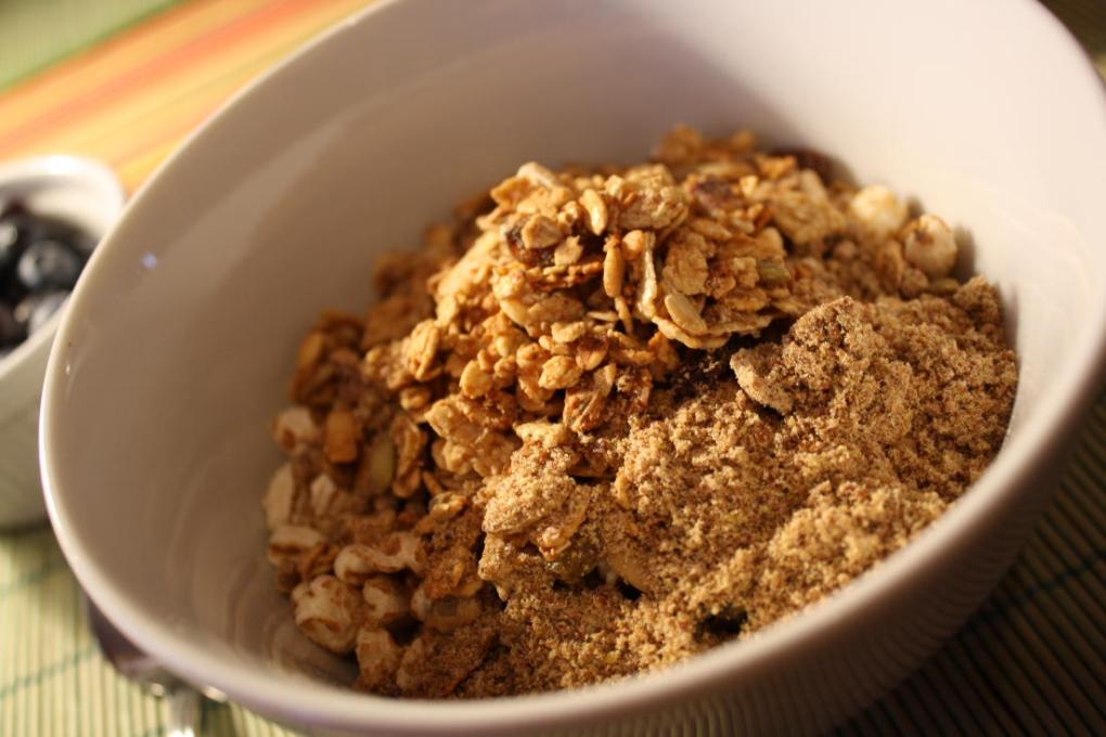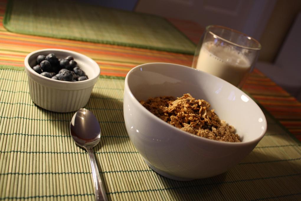 Au menu en ce dimanche de grisaille, des céréales avec bleuets et lait de soya!