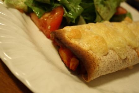 Ce soir, j’ai continué les essais culinaires avec une tentative de burritos végétariens. Le résultat n’est pas comparable à celui du Mesa 14 mais il se défendait quand même pas mal. Je n’ai pas de recette précise à vous proposer car j’y suis allée à l’aveuglette mais voici ma liste d’ingrédients :