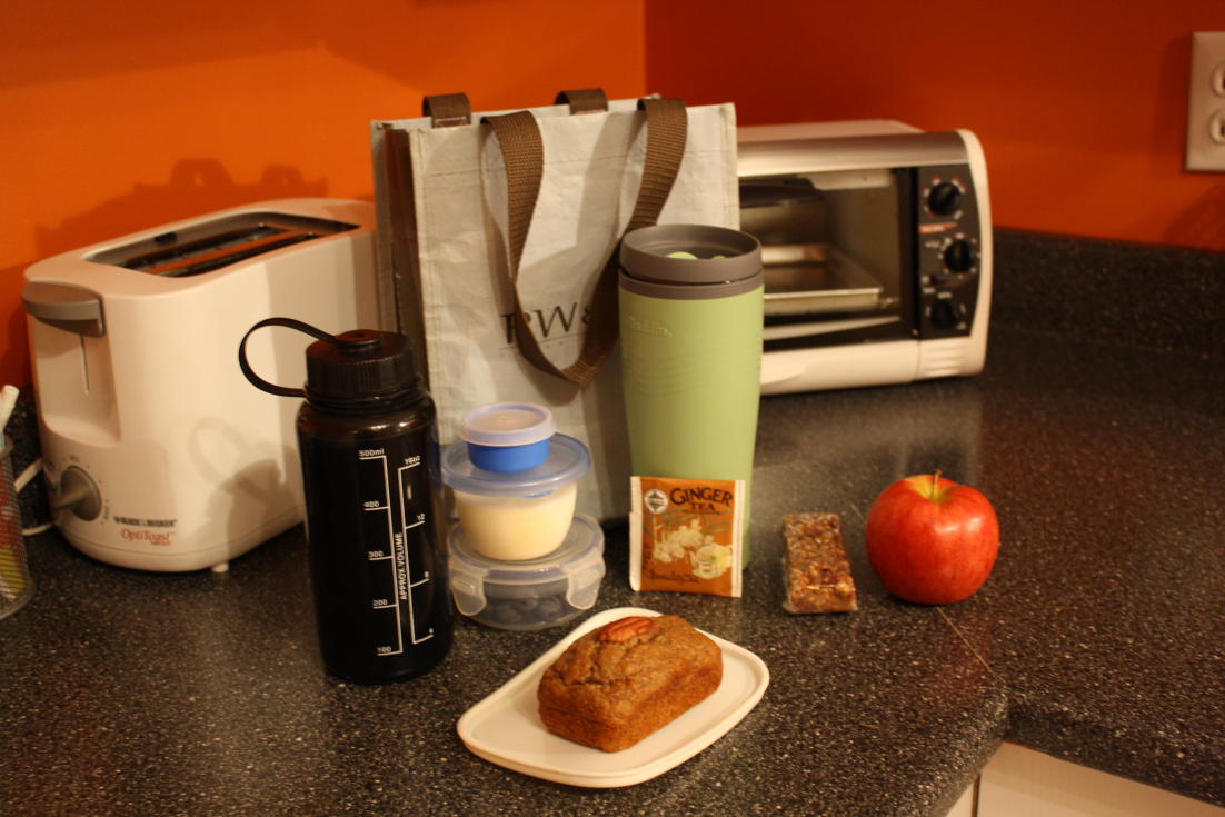 Comme il est super tôt, j’amène mon déjeuner avec moi.