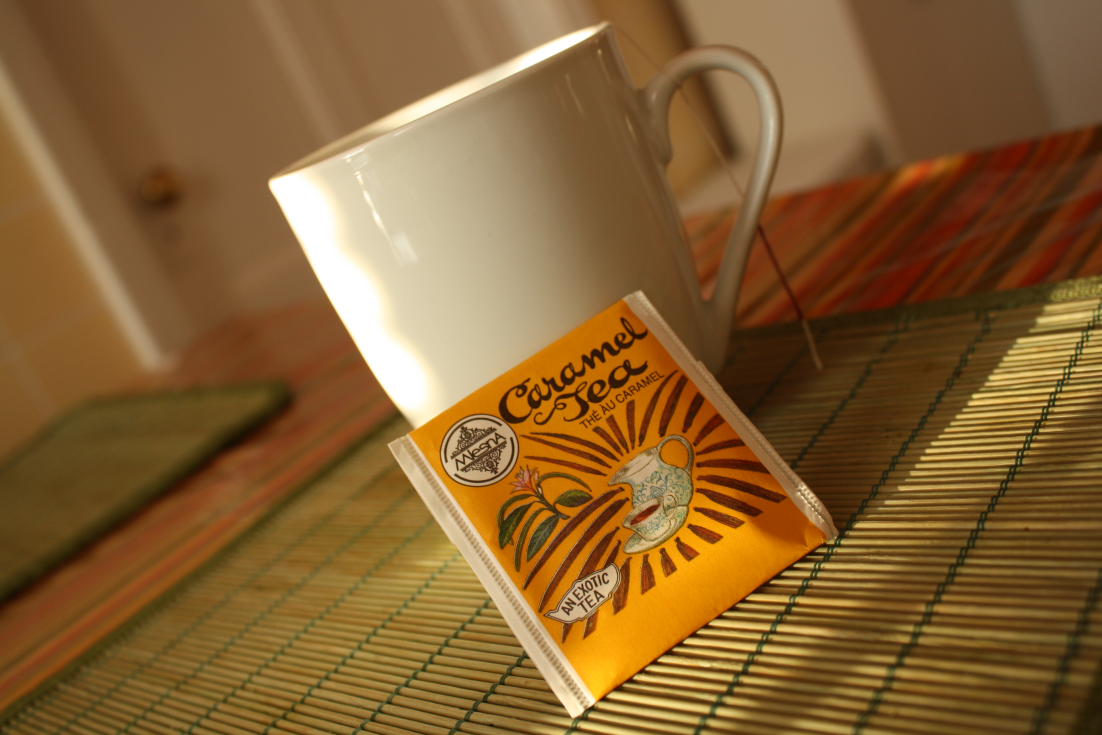 Je suis retournée me faire une troisième rôties au beurre d’arachide, le pain est vraiment minuscule… Et un thé au caramel, mium! Si vous tombez sur cette sorte de thé dans un magasin de Montréal, faites-le moi savoir! Ma soeur m’en ramène d’Ottawa mais ça serait pratique d’en trouver plus près.