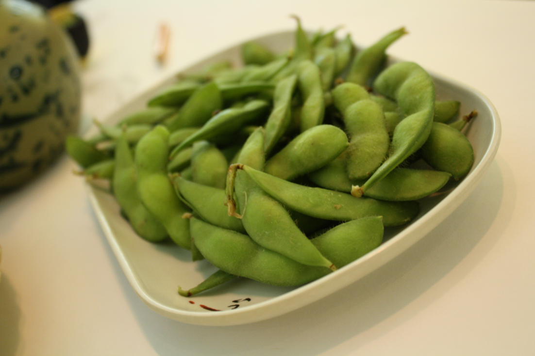 Des fèves edamame (après avoir tenté de les manger entières, on a finalement décidé de ne manger que les graines à l’intérieur… je ne sais toujours pas quelle était la bonne façon).
