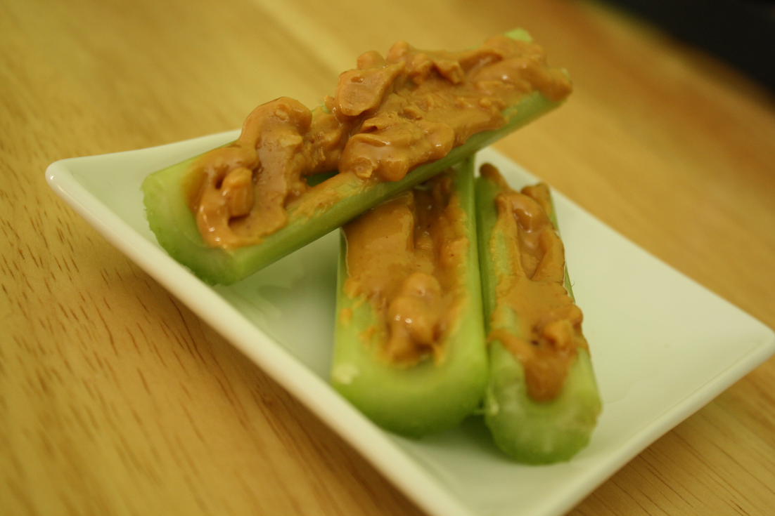 À mon retour, j’ai mangé des bâtonnets de céleri avec du beurre d’arachide croquant.