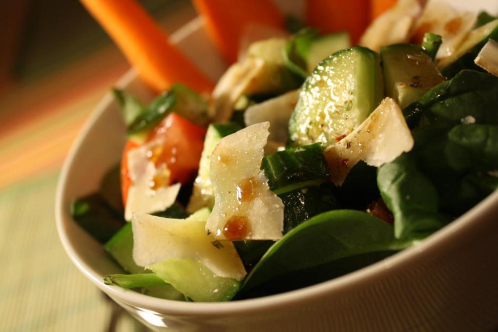 Bon, je l’avoue, je suis un peu tombée dans le pot de beurre de peanut après avoir pris ma photo. C’est une dépendance mais je ne sais pas où ça se soigne. Avez-vous déjà entendu parlé des Accros au beurre de peanut Anonymes? Peut-être que je devrais songer à partir ce groupe moi-même. Après ça, je n’avais pas un gros appétit alors je me suis fait une simple salade verte avec de la vinaigrette maison (HO, SÉ et VB).
