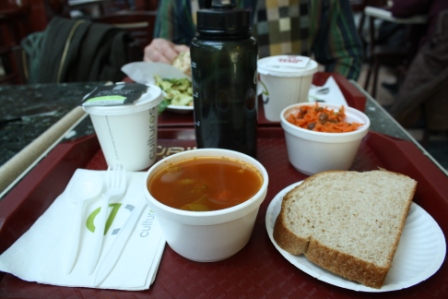 Ce midi, mon père et moi sommes arrêté à la Halte-Bouffe de Place Laurier. J’ai pris un combo léger chez Culture.