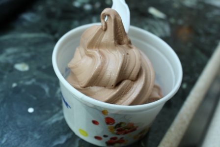 Comme dessert, j’ai célébré l’arrivée du beau temps avec ma première crème glacée molle au chocolat! Yaya!