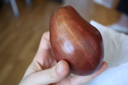 Je pense que j’ai attrapé froid durant ma course d’hier… Je manquais vraiment d’énergie en fin d’après-midi. J’ai sortie une poire Anjou rouge et une demi ProBar pour me requinquer un peu. Désolée pour le manque de photo de ma barre mais mon appareil était trop loin…