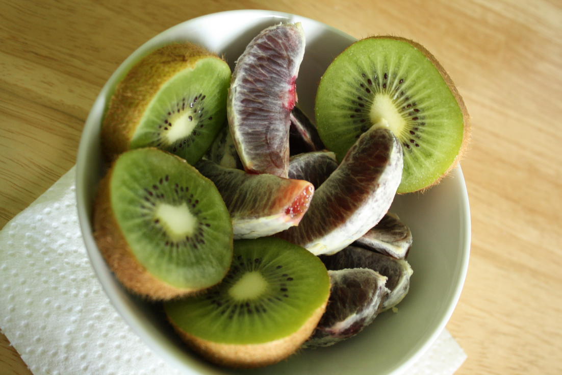 En ce moment, je tente de me bourrer de vitamines C avec un kiwi et une orange sanguine. J’ai essayé de manger la pelure du kiwi à la manière de Kath et Jenna mais, finalement, ce n’est pas pour moi… Ce n’est pas mauvais, c’est juste un peu étrange.