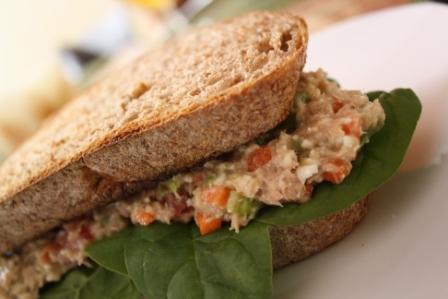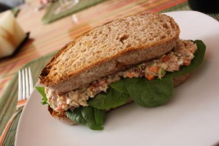 Ce midi, j’ai fait un lunch super simple : des sandwichs au thon et fromage cottage.