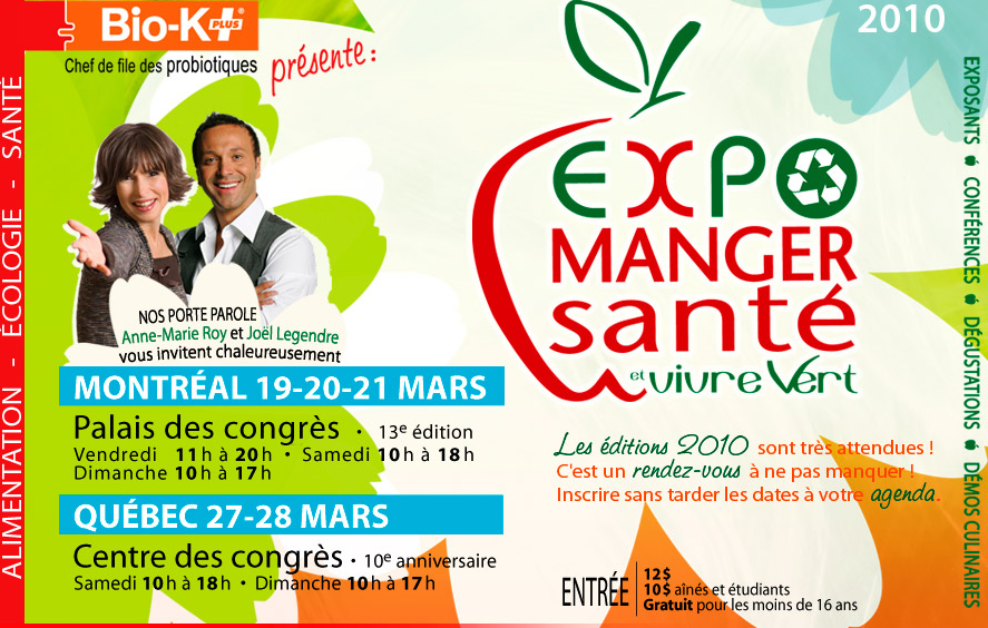 Un petit rappel pour tout ceux qu’y s’intéressent à l’alimentation et à la santé en général, l’Expo Manger Santé se tient ce week-end à Montréal et la fin de semaine suivante à Québec.