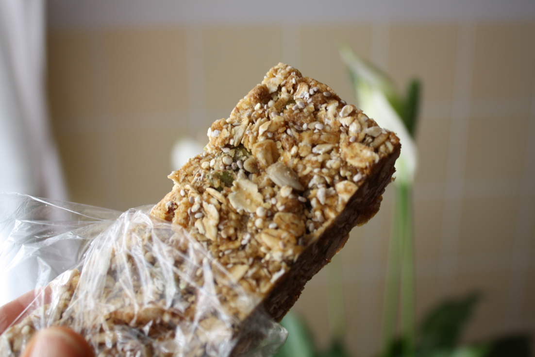 Et, cet après-midi, en plus de goûter à toutes mes créations, j’ai grignoté une barre multigrains aux beurre d’arachide. J’adore l’ajout de blé soufflé dans ces barres, on dirait qu’on croque dans une petite guimauve! Mium!
