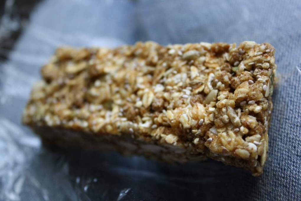 Avant de partir, j’ai mangé une barre multigrains au beurre d’arachide.