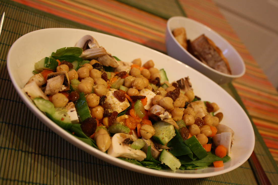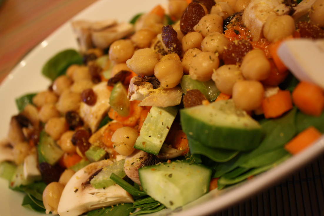 En revenant de mon chiffre surprise au gym j’étais affamée alors je me suis fait une salade toute simple. Habituellement, j’aime bien cuire mes pois chiches au four avec quelques épices, ça leur donne un peu plus de goût et une texture croquante mais l’idée d’attendre 20 minutes ne me plaisait pas du tout. Pois chiches au naturel donc! Ils sont moins goûteux mais amènent une touche crémeuse intéressante.