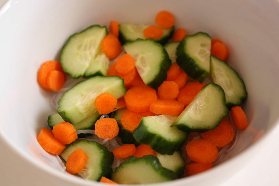 Pour la sauce, j’ai combiné du vinaigre de riz, de l’huile de sésame, du sirop d’érable et du beurre d’arachide. Je n’ai pas les mesures précises car j’y suis allée au goût.