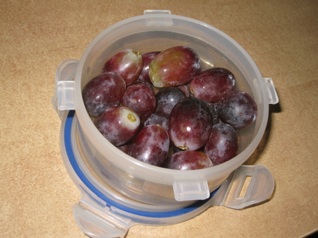 Comme collation numéro 2, j’ai grignoté des raisins rouges.