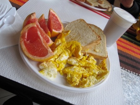 Présentement, nous restons au Ostello Archi Rossi de Florence, à deux rues de la gare. J’ai rarement vu une aussi grosse auberge de jeunesse. C’est super bien organisé, le déjeuner et Wi-Fi sont inclus et ils offrent plein de services à petits prix. Je le recommande fortement pour tout ceux qui passeraient par Florence! Amenez vos bouchons par contre, c’est très bruyant la nuit. Ma soeur y a séjourné il y a trois ans et elle nous a fortement recommandé cette auberge pour son déjeuner. Avec raison! Il y a un choix incroyable! Une chance qu’on reste 4 nuits sinon j’aurais eu beaucoup trop de mal à choisir! Ce matin, mon choix s’est arrêté sur les oeufs brouillés avec toasts (sans bacon) et cappuccino auxquels j’ai ajouté un demi pamplemousse.