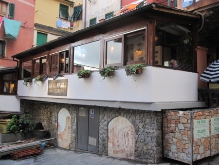 Après avoir visité le centre-ville de Riomaggiore en profondeur (son gros 200 mètres carrés), dans les quelques moments sans pluie, ni orage, nous nous sommes arrêtées dans un beau restaurant pour souper.