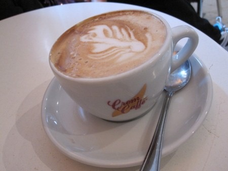 En attendant le prochain départ, nous nous sommes arrêtées au café de la gare pour siroter un délicieux (et joli aussi) cappuccino.