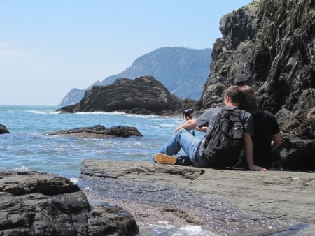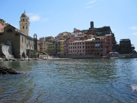 Vue de la mer depuis Corniglia et mes pieds dans l’eau. Ça me prend une photo de mes pieds à la plage à chaque voyage et, comme les jours ensoleillés sont plutôt rares, je n’ai pas pris de chance.