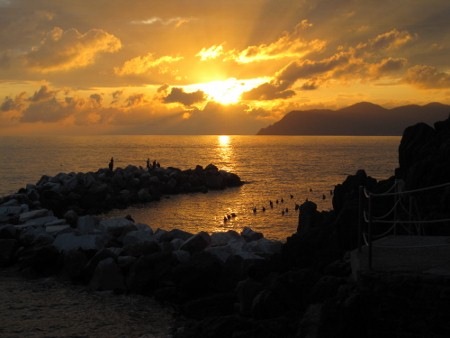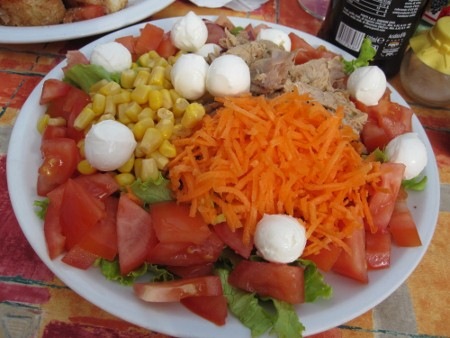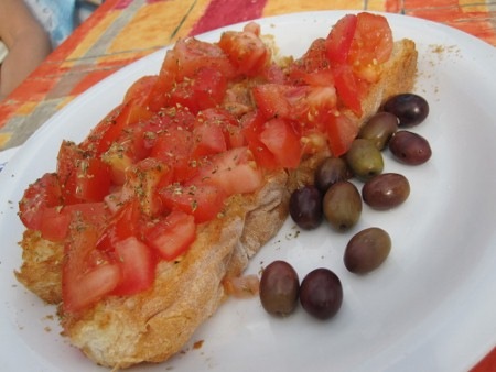 Nous avons soupé au bord de la mer à Monterosso, le dernier des cinq villages. Nous avons partagé une salade au thon et des bruschettas tomates et origan.