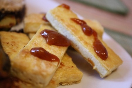 Après avoir passé l’après-midi dans la cuisine à faire des tests, j’ai gardé mon souper très simple : choux de Bruxelle rôtis, tofu grillé dans la poêle avec de l’huile de coco et des aubergines panées. La texture des aubergines était excellente mais elles manquaient cruellement de goût. Je vais retravailler ma recette avant de vous en parler plus en détails. Pourtant, j’avais mis des épices…