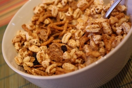 Mon déjeuner était très simple aujourd’hui : céréales (Optimum + blé soufflé + graines de lin moulues) avec du lait de soya et des clémentines.