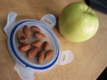 Mon déjeuner ce matin : petit pain végétalien aux épices, canneberges et noix avec un London Fog (je vais faire un «comment faire» un London Fog demain pour que les nouveaux sachent de quoi je parle). Mes collations comprenaient une pomme et des amandes rôties, des dattes ainsi que des crudités et des craquelins.
