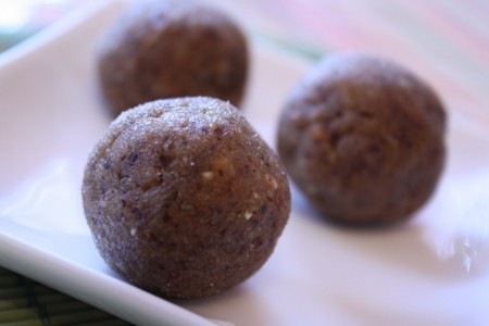 Pour dessert, j’ai sorti une de mes nouvelles créations : des bouchées aux dattes et aux pacanes.