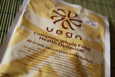 J’ai acheté une portion individuelle de Vega Vanille Chai et de Vega Chocolat pour les essayer. Mon smoothie de récupération contenait :