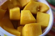 Collations am (pré et post-entraînement) : mangue, carottes et beurre de cachou (encore meilleur qu’avec du beurre d’arachide).